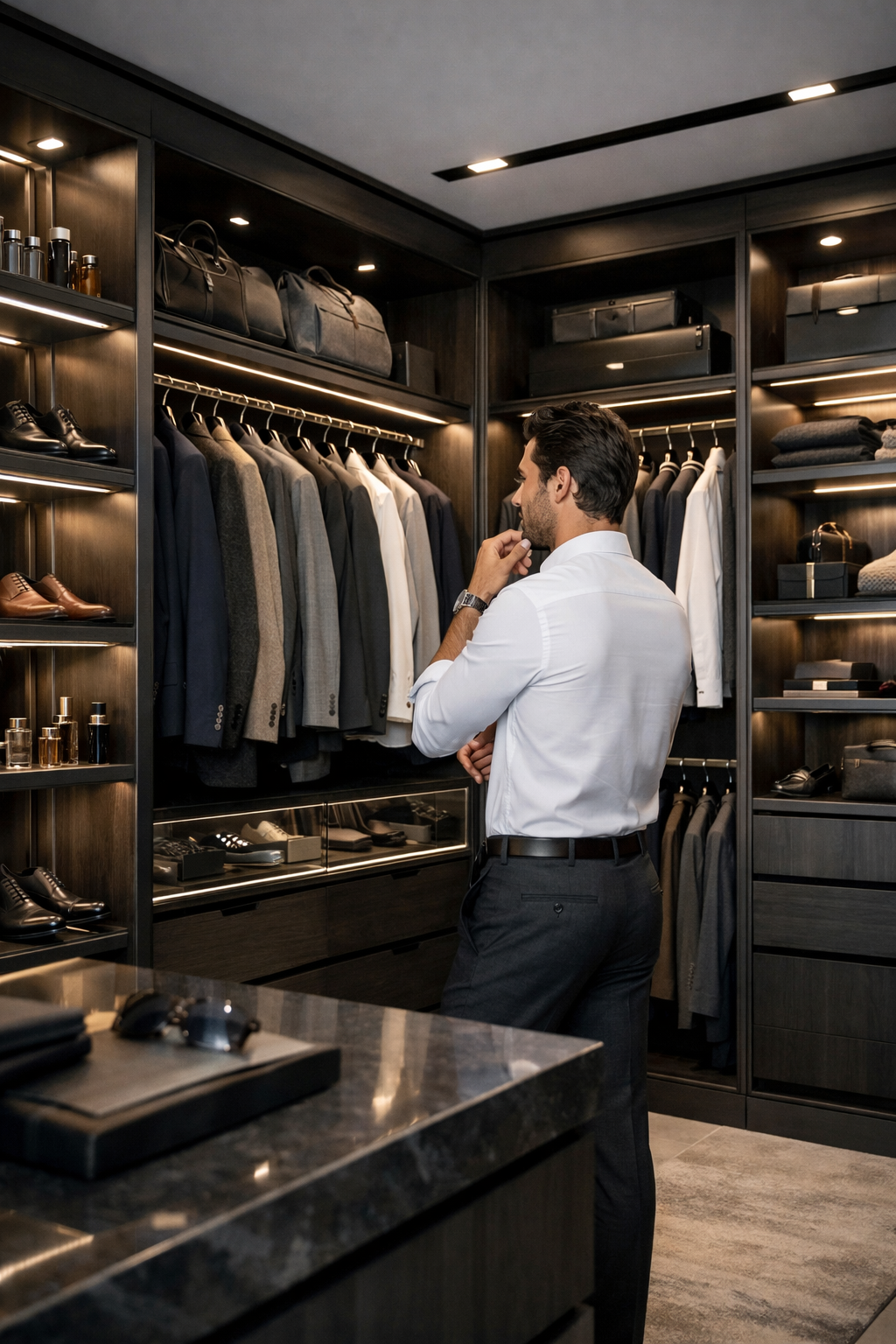 Lots of clothes, but no idea. If everything blends into one and nothing feels like the right choice, your wardrobe needs help. It may be full, but it is not working. Most men wear twenty percent of their clothes eighty percent of the time. A wardrobe edit removes noise, clutter and chaos and replaces it with calm. Fewer pieces. Better combinations. Immediate relief.