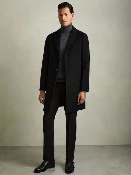 • Fabric & Colours: Wool or wool-cashmere blends in darker shades like navy, black, or charcoal work best.