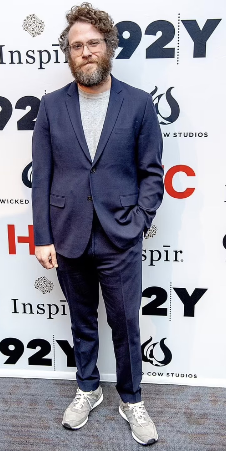 3.Seth Rogen – Seth Rogen styles himself in ways that complement his body shape. He often opts for tailored suits that help square off his shoulders, combined with slim-fitting styles that highlight his strengths.
